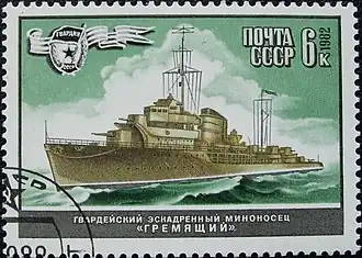 Gremyashchy (Russian: Гремящий, lit. 'Thunderous') was one of 29 Gnevny-class destroyers (officially known as Project 7) built for the Soviet Navy during the late 1930s. Completed in 1939, she was assigned to the Baltic Fleet and was later transferred to the Northern Fleet in 1941.[1][2][3]