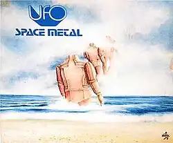 Space Metal is a double compilation album by UFO released on Nova Records in 1976.[3] The double LP set combines tracks taken from their first three albums: UFO 1, Flying and their Japanese only release UFO Lands in Tokyo (The last title is given on the sleeve as UFO Live).