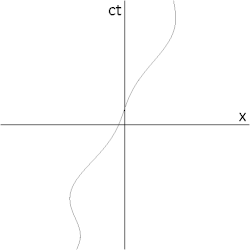 The term Minkowski diagram refers to a specific form of spacetime diagram frequently used in special relativity. A Minkowski diagram is a two-dimensional graphical depiction of a portion of Minkowski space, usually where space has been curtailed to a single dimension. The units of measurement in these diagrams are taken such that the light cone at an event consists of the lines of slope plus or minus one through that event.[3] The horizontal lines correspond to the usual notion of simultaneous events for a stationary observer at the origin.