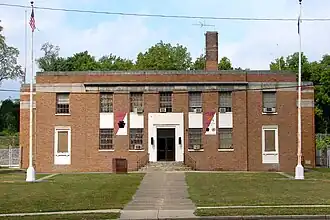 Built in 1938, this historic structure is an "I"-plan, brick building that was designed in the Moderne style. It consists of a two-story front section, two-story drill hall, and a one-story rear section. The front section is seven bays wide, with the center five bays slightly projecting. During World War II, it was used to house German prisoners of war.[2]