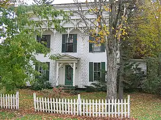 Spirit House, also known as Timothy Brown House or Brown's Hall, is a historic home located at Georgetown in Madison County, New York. It was built about 1865 and is essentially a square, wood-frame structure. The exterior features two-by-fours arranged vertically and scalloped at regular intervals. The use of the scallop pattern gives the Spirit House a highly textured surface and it is almost impossible to discern how it is constructed without close inspection. It also features a three tiered cornice with downward pointing keys. It was constructed as a residence and for meetings of Spiritualists in a large hall on the second floor.[2]