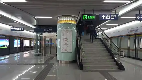 Sports Center Station (Chinese: 体育中心站) is a station of Line 3 of Wuhan Metro. It entered revenue service on December 28, 2015. It is located in Caidian District.[1] This station used to be known as Sports Center North Station during construction (Chinese: 体育中心北站).[2] It is near Wuhan Sports Center Stadium.