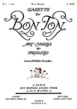 - ^ Apart from a special Summer issue in 1915, La Gazette du Bon Ton would not resume publication until January 1920. See Davis, "Classic Chic: Music, Fashion, and Modernism", p. 263, note 47.