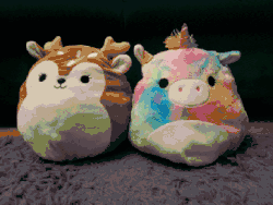 Squishmallows is a brand of stuffed toy that was launched in 2017 by Kelly Toys Holdings LLC and is owned by Jazwares, a Berkshire Hathaway company.[1] Squishmallows are round and come in a variety of colors, sizes, animals/foods/objects, and textures. The brand has created over 3,000 Squishmallow designs.[2][3][4]