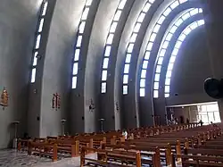 After the Chillán earthquake of 1939, the cathedral was completely destroyed again, beginning that same year the reconstructions that culminated in 1950. In this new reconstruction, the architect Hernán Larraín Errázuriz was based on ideas of modernism. The figure of the 10 arches represent the prayer and the sign that is made with the hands at the moment of praying intercalando the fingers of the hands and closing them of oval form.