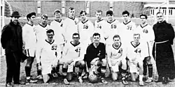 The St. Bonaventure Bonnies men's soccer team is a varsity intercollegiate athletic team of St. Bonaventure University in Allegheny, New York, United States.[2] The team is a member of the Atlantic 10 Conference, which is part of the National Collegiate Athletic Association's Division I. St. Bonaventure's first men's soccer team was fielded in 1961. The team plays its home games at McGraw-Jennings Field in neighboring Olean. The Bonnies are coached by Mick Giordano.