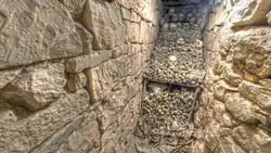 No evidence exists on the provenance of the bones, or how they ended up in these secret passages. Speculation suggests that these were the bones of unfortunate victims of the 1614 Turkish raid,[33] while others suggest the void was used as an ossuary.[35] Between 1978 and 1980 studies on the bones indicated that the skeletons had probably been exhumed and moved there from a cemetery.[33] Moreover, it was found that the skeletal remains belonged to individuals who had died within a short period of time.[35]