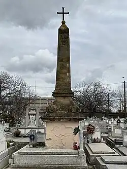 In the 1960s, the obelisk was relocated to the cemetery on Calea Lipovei, where it still stands today. This move was reportedly prompted by the commencement of construction on Nicolae Ceaușescu's protocol villa in Timișoara, as the obelisk was situated on the land designated for the villa's construction.[11]