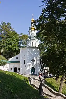 The church was built in the 12th century (although chronicle sources do not mention the time of the temple's construction) near the southern entrance to the Saint Anthony Caves, together with which it laid the foundation for the St. Elijah Monastery.[7][8]