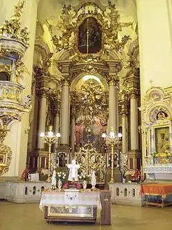 St. George's Cathedral (Ukrainian: Собор святого Юра, translit. Sobor sviatoho Yura) is a baroque-rococo cathedral located in the city of Lviv, the historic capital of western Ukraine. It was constructed between 1744-1760[1] on a hill overlooking the city. This is the third manifestation of a church to inhabit the site since the 13th century, and its prominence has repeatedly made it a target for invaders and vandals. The cathedral also holds a predominant position in Ukrainian religious and cultural terms. During the 19th and 20th centuries, the cathedral served as the mother church of the Ukrainian Greek Catholic Church.[2]
