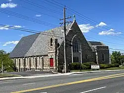 ![]() Southern façade of St. John's main building and sanctuary, facing Harford Road | |