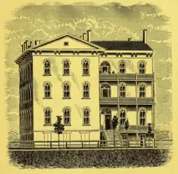 St. Mary's School (formerly, Ewing Female University; 1868-) was an American parochial girls' school located in Knoxville, Illinois. It opened in April 1868, in the building of the Ewing Female University, erected about ten years before. For lack of endowment, that institution had been compelled to discontinue its work, and the property was transferred to the Episcopal diocese of Illinois.[1] Of the fifteen trustees, ten were appointed to represent the diocese of Illinois and five to represent Knox county. The Rev. Charles Wesley Leffingwell became the founder and rector of St. Mary's, Mrs. Leffingwell being the matron and Miss Nancy Menedy Hitchcock the vice-principal. Dr. Leffingwell continued for 52 years as rector of the school; Mrs. Leffingwell was matron for 40 years; Miss Hitchcock was vice-principal for over 25 years.[2] This institution was entirely rebuilt and refurnished in 1883, at a cost of over US$100,000. Chapel, cloister, and other improvements were added.[3]