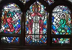 The church presented different types of the architecture typical of Gothic revival: the double pointed arch on the windows along the nave and sanctuary and baptistery (most of them with colourful stained glass and most of them dating from the first half of the 20th century) featuring figures and scenes from the New Testament[11] Two of the stained glass windows (dating from 1992) were a fine blend of contemporary art and Christian imagery (the New Heaven window and the New Earth window. One exception to the New Testament thematic is "The Galahad window" based on Alfred, Lord Tennyson's version of the Arthurian legend and the quest for the Holy Grail (Le Morte d'Arthur) - in the Gothic style.