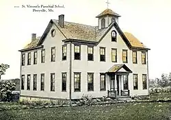 In 1896, the people of St. Mary's (Assumption) Parish saw the need for the community’s English-speaking children to have their own school, and opened St. Vincent Grade School on the north side of St. Joseph Street. In 1907, four Daughters of Charity arrived from Emmitsburg, Maryland, to teach at St. Vincent's, and remained for about 90 years. By 1915, the old school had become inadequate that a new school building was built on the south side of St. Joseph Street. When classes began in the new DePaul School in 1917, there were 10 Sisters on the faculty and 332 students in both the grade school and high school. The DePaul School housed classes Kindergarten through grade twelve until 1947.[10]