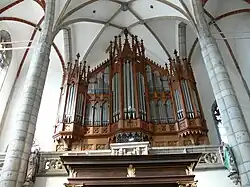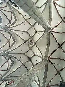 In the western part, there is a remarkable late Gothic triforium, supported by pillars of columns. The space under the triforium is vaulted with a net vault. The entrance to the triforium is lined with a saddle portal from 1510.