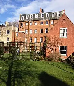 The original building dates from 1830, and was constructed as two separate houses (38 and 39).[20] The site was previously part of a coster's (i.e., fruit seller's) yard and stable. In the nineteenth century, the two houses served as private homes for several Anglican clergy connected to the university, and to a number of widows of independent means.