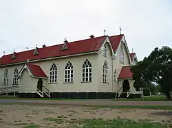 Initially, Mass in the Rosewood district was celebrated in settlers' homes, and after 1875 in a room at The Rising Sun Hotel. This practice continued until the first St Brigid's Church was built in 1885. The locality was a prosperous one, with sugar, timber and dairying supporting the predominantly Irish and German population. The foundations of the second church were blessed on 13 December 1908 and the building, which could accommodate a congregation of 1,000, was opened for religious services on 13 February 1910 by Archbishop of Brisbane James Duhig.[3][4] Rosewood was the first country place in which, as a priest, Bishop Duhig had celebrated Mass.[2]