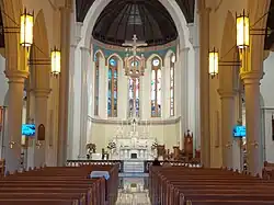In 1977, a rearrangement and extension of the Cathedral sanctuary was commenced under Bishop John Satterthwaite to better accommodate the celebration of Mass in accordance with the Church's liturgical reforms following the Second Vatican Council.[14]