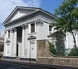 St John the Baptist's Church is a Roman Catholic church in the Kemptown area of the English city of Brighton and Hove. It was the first Roman Catholic church built in Brighton after the process of Catholic Emancipation in the early 19th century removed restrictions on Catholic worship. Located on Bristol Road, a main road east of the city centre, it is one of 11 Catholic churches in Brighton and Hove.[1] The Classical-style building, which was funded by Maria Fitzherbert and completed in 1835, has been listed at Grade II* by English Heritage for its architectural and historical importance.