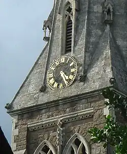 At the church's consecration on 12 September 1861 the tower had one bell. Five more were added in 1864, creating a ring of six that was first rung on 29 September 1864.[17] In 1887 the parish commemorated the Golden Jubilee of Queen Victoria by adding two more bells, increasing them to a ring to eight that was first rung on 20 June 1887.