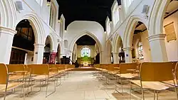 A refurbishment scheme for the church interior was announced in 2014, which involved laying new flooring, installing internal plate glass screens, and the removal of George Gilbert Scott's oak pews to replace them with modern upholstered chairs.[12] The controversial scheme was approved by the Church of England consistory court but was opposed by conservationists; heritage bodies such as the Victorian Society and Historic England, along with Watford Borough Council, objected to the plans.[13]