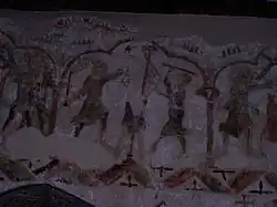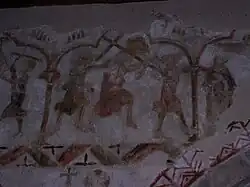 The scenes on the north wall are: the Annunciation, the Visitation, the Nativity itself, and an angel and shepherd. The subjects of the last two scenes are uncertain.[5]