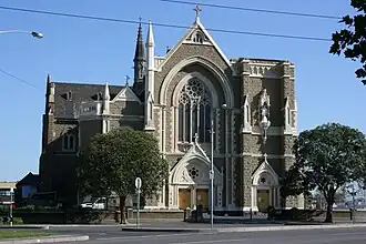St Mary Star of the Sea is a Roman Catholic parish church in West Melbourne, Victoria, Australia. The foundation stone of the church was laid in 1882 and the building was completed by 1900. Since 2002, restoration has been ongoing to restore the church to its original state. Built with seating for over 1,200 people, it has been described as the largest parish church in Melbourne, in Victoria, or even in Australia.