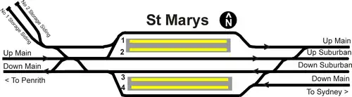 This Wikipedia article contains material from St. Marys Railway Station Group, entry number 1249 in the New South Wales State Heritage Register published by the State of New South Wales (Department of Planning and Environment) 2018 under CC-BY 4.0 licence, accessed on 13 October 2018.