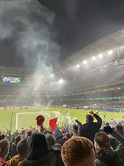 On 24 October 2018 it was announced that Harry Kenny (who had been assistant manager in the 2013 league-winning campaign) would be the new manager of the club, signing a two-year contract.[28] His new signings ahead of the 2019 season were Gary Shaw, David Webster, Ciaran Kelly, Cian Coleman, Georgie Poynton, Brandon Miele, Michael Drennan, Rhys McCabe and old fan favorite Chris Forrester, stating that his aim was to get the club back competing in European competition.[29] Kenny's first competitive game in charge of the Saints was on 15 February 2019, a 1–0 opening-day victory over league runners-up Cork City at Richmond Park, with the game attracting the biggest attendance at a domestic game since October 2010.[30] This was followed by a sell-out against rivals Shamorck Rovers on 8 March.[31] On 25 April 2019 it was announced that the club had been awarded a licence to compete in UEFA Europa League action for the 2019–20 campaign ahead of Waterford, who had finished one place ahead of Pats in fourth place the previous season, but were not awarded a licence due to their club reforming in late 2016 and thus breaking UEFA's 'three-year rule'.[32] Pats drew IFK Norrköping of Sweden and were beaten 2–0 at home and 2–1 away, knocking them out at the first hurdle.[33] With the team scoring just 24 goals in 29 games and attendances steadily dropping, fans became restless with Kenny and after a shock cup exit to UCD on 23 August 2019,[34] Kenny resigned by mutual consent the following day.[35]