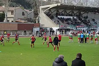 The Stade de l'Aguille is a multi-purpose stadium in Limoux, France. It hosts tennis, football and rugby league. Super XIII side Limoux Grizzlies use it as their home ground and have done since it opened. Situated near the river Aude, the name translates as Stadium of the Needle. The stadium has floodlights and one main stand which can accommodate 400 seated fans. The capacity is currently 5,000. Owned by the local town council the stadium has received two recent renovations in 1975 and in 1984.[1] The ground has played host to Challenge Cup games.[2]