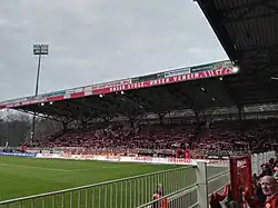 In 2003 the yearly Union Weihnachtssingen (Christmas Carols Singing) started as an unofficial gathering to which just 89 fans showed up.[7] In 2015, 28,500 people attended, including players and supporters of other teams from around Germany and Europe.[8] Fans drink Glühwein, wave candles around, light flares and sing a combination of Christmas carols and football chants.