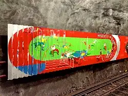 Stadshagen metro station is a station on the blue line of the Stockholm metro, located in the district of Stadshagen. The station was inaugurated on 31 August 1975 as part the first stretch of the Blue Line between T-Centralen and Hjulsta. The trains were running via Hallonbergen and Rinkeby.[2] The distance to Kungsträdgården is 3 km (1.9 mi).