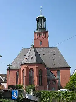 49°52′17″N 8°39′22″E / 49.8714°N 8.6562°E The Stadtkirche Darmstadt (German: Stadtkirche Darmstadt) is the main Protestant church of the city of Darmstadt and one of its parish churches, but no longer the bishopric seat of the local Evangelische Kirche in Hessen und Nassau, which is the Pauluskirche in Darmstadt.