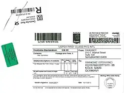 In 2004, the website The Smoking Gun successfully ordered PhotoStamps with controversial images,[35] but Stamps.com updated their policy to prohibit images of world leaders or "any material that is vintage in appearance or depicts images from an older era."[36] The PhotoStamps program was ended by the USPS in 2020.[37]