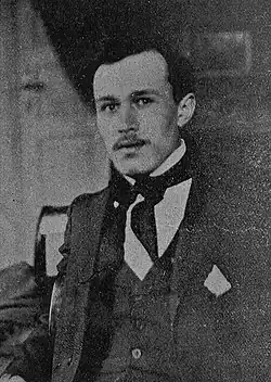 Stanisław Kuczborski (1881 in Warsaw – 1911 in Warsaw) was a Polish modernist painter, graphic artist and caricaturists. His mother, Klotylda Kuczborska (née Gierymska) was a sister of renowned painters Aleksander Gierymski and Maksymilian Gierymski. Kuczborski studied painting in Kraków at the School of Fine Arts under Leon Wyczółkowski and Jan Stanisławski before continuing his art education in Paris. He was a co-founder and participant of the legendary Zielony Balonik art-and-literary cabaret in Kraków. His lithographs published in Liberum Veto and Hrabia Wojtek, appeared in Teka Melpomeny collection (1904) about personalities in the local theatre. One of his better-known paintings inspired by the Young Poland movement is the Funeral (1904), depicting village folk from Bronowice.[1] Kuczborski married Zofia Munk with whom he had a daughter, Irena Kuczborska (1907–1971), also a fine arts painter.[2][3]