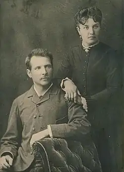 Didžiulis inherited the manor in Griežionėlės after his father's death in 1874.[2] In 1877, he married Liudvika Nitaitė who later became known as a writer and an activist. They had a total of nine children – five daughters and three sons grew to adulthood while one son died in infancy[4] – but their marriage was not happy. While their shared their interest in Lithuanian language and culture, Didžiulis had several lovers and was stubborn even despotic.[5] In 1896, Didžiulienė moved to Mitau (Jelgava) in present-day Latvia.[6]
