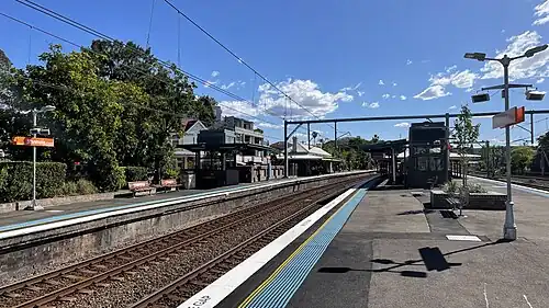 ![]() Westbound view from Platform 2, October 2023 | |||||||||||||||||||||||||