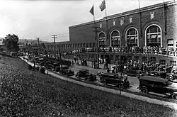 Stansbury Hall was a building on the Downtown Campus of West Virginia University. It was named after Harry Stansbury (died 1966), a former WVU Athletic Director.[1] Opened in 1929 as the WVU Field House, just to the southwest of "Old" Mountaineer Field, this was the home of WVU basketball until 1970, when the WVU Coliseum was opened. This was the home floor during the days of Hot Rod Hundley and Jerry West. It hosted the Southern Conference men's basketball tournament in 1953. While the home venue of WVU basketball, the team compiled a record of 370–81 (.820) when playing there. In October 1973, it was renamed to honor Stansbury.[2]