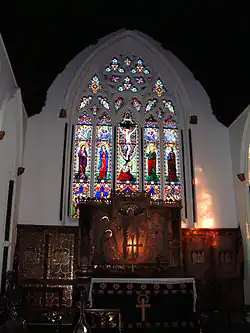 This was given by the Revd. W. H. Shaw at the time of the Church's jubilee in 1907. It shows Our Lord holding out His hands in invitation while angels stand or kneel on either side.