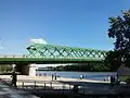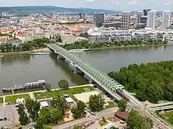 Starý most (English: Old Bridge) is a bridge over the river Danube in Bratislava, Slovakia. Before its reconstruction, the 460-meter-long (1,510 ft) bridge included a wooden pathway for pedestrians, a two-lane road, and a railway track, connecting the historic old city of Bratislava with the newer region Petržalka. The bridge was closed for cars in 2009 and for buses on 14 May 2010. On 2 December 2013 it was also closed for pedestrian and bicycle traffic as deconstruction of the old bridge began. At the time of its closure it was the oldest standing bridge in Bratislava.
