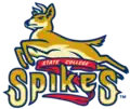 The team name "Spikes" has a threefold meaning. The club's official logo depicts a young white-tailed deer, for whom a "spike" is an undeveloped antler, symbolic of a young team member who may develop into a Major League Baseball player. The name also refers to a railroad spike, similar to the way the name "Altoona Curve" commemorates the famous Horseshoe Curve on the Pennsylvania Railroad. Finally, baseball players have long worn shoes with spikes. The team's official colors are Penn State navy blue, cardinal, old gold, and moonlight yellow.
