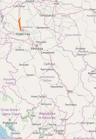 01508 | 1.385 km (0.861 mi) | 13.090 km (8.134 mi) | Vrbas (Feketić) – Vrbas (Zmajevo) (overlap with ![]() |
