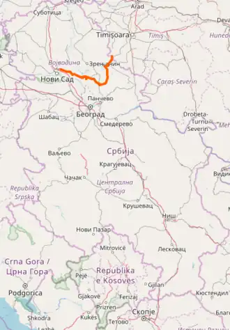 12909 | 2.700 km (1.678 mi) | 128.805 km (80.036 mi) | Jaša Tomić – Serbia – Romania border at Jaša Tomić |