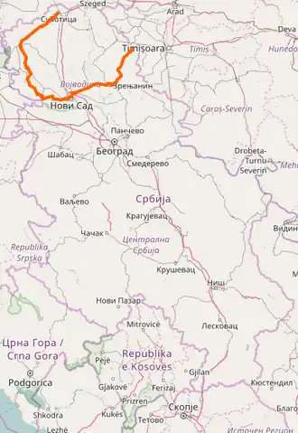 01223 | 10.005 km (6.217 mi) | 276.837 km (172.019 mi) | Vojvoda Stepa – Serbia-Romania border (Srpska Crnja) |