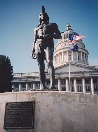 A statue of Massasoit by Cyrus E. Dallin is installed outside the Utah State Capitol in Salt Lake City, Utah, United States.[1]