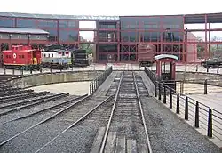 Steamtown National Historic Site (NHS) is a railroad museum and heritage railroad located on 62.48 acres (25.3 ha)[2] in downtown Scranton, Pennsylvania, at the site of the former Scranton yards of the Delaware, Lackawanna and Western Railroad (DL&W). The museum is built around a working turntable and a roundhouse that are largely replications of the original DL&W facilities; the roundhouse, for example, was reconstructed from remnants of a 1932 structure. The site also features several original outbuildings dated between 1899 and 1902. All the buildings on the site are listed with the National Register of Historic Places as part of the Delaware, Lackawanna and Western Railroad Yard-Dickson Manufacturing Co. Site.[3][4]
