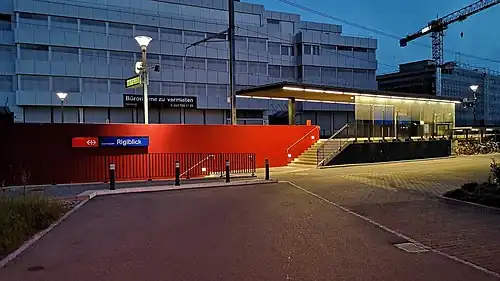 Steinhausen Rigiblick is a railway station in the Swiss canton of Zug, in the municipality of Steinhausen.[2] It is located on the Zurich to Zug via Affoltern am Albis railway line,[3] within fare zone 623 of the Zug Fare Network.[1]