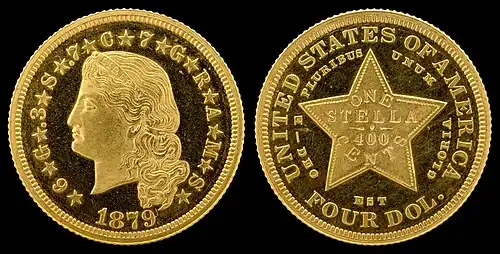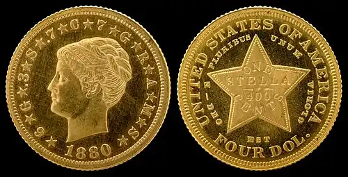 - ^ "Classic US Coins – Gold Stella $4 Coin Goes to Auction". CoinWeek.com. CoinWeek, LLC. 12 August 2016. Retrieved 26 July 2019.