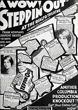 Steppin' Out is a 1925 American silent comedy film directed by Frank R. Strayer from a screenplay by Bernard Vorhaus. The film stars Dorothy Revier, Ford Sterling, and Robert Agnew, and was released by Columbia Pictures on October 15, 1925.[2]