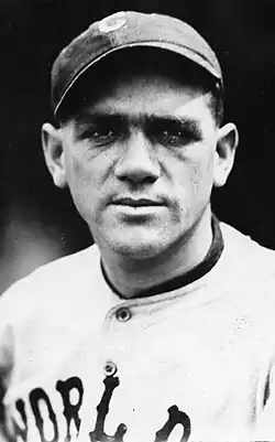 Steve would end up having the most successful playing career of the O'Neill brothers, serving as a catcher for 17 years in the American League.[3] He made his major league debut as a September call-up on the 18th in 1911 for the Naps against the Boston Red Sox. He went 1-for-4 while stealing a base.[4] He would spend the next twelve years with the team. He appeared in eight other games, collecting four total hits. He gradually played more for Cleveland in the next three seasons, going from 69 to 80 to 87 games; in 1913, while batting .295 in eighty games, he received votes enough to finish 24th in MVP voting.[5] He then played a majority of a season for the first time in 1915, playing in 121 games while batting .236 with 91 hits and 34 RBIs; he hit two home runs that season, the first of just thirteen in his career. Aside from 1917, when he batted .184, he would bat above .230 for the rest of his career. O'Neill collected his first hundred hit season in 1919, doing so by collecting 115 hits in 125 games while driving in 47 runs; he batted .289 while also collecting 35 doubles with 48 walks and 21 strikeouts. The following year, he had his finest and longest season. He played 149 games and batted .321 with 55 RBIs and career highs in hits (157), doubles (39), and home runs (three). His final home run of that season came in the moment of tragedy. On August 16, he hit a home run off Carl Mays of the New York Yankees.[6][7] That same night, as he drove in another run to win the game for Cleveland 4–3, a Mays fastball hit Ray Chapman in the head that saw him die that night; O'Neill and the rest of the team saw his body before the funeral and he fainted after seeing him in the casket. That season saw Cleveland win the American League pennant for the first time ever. In the 1920 World Series, O'Neill batted .333 by going 7-for-21 while driving in two runs (both in Game 1, which Cleveland won 3–0) as they beat the Brooklyn Robins in seven games.[8][9]